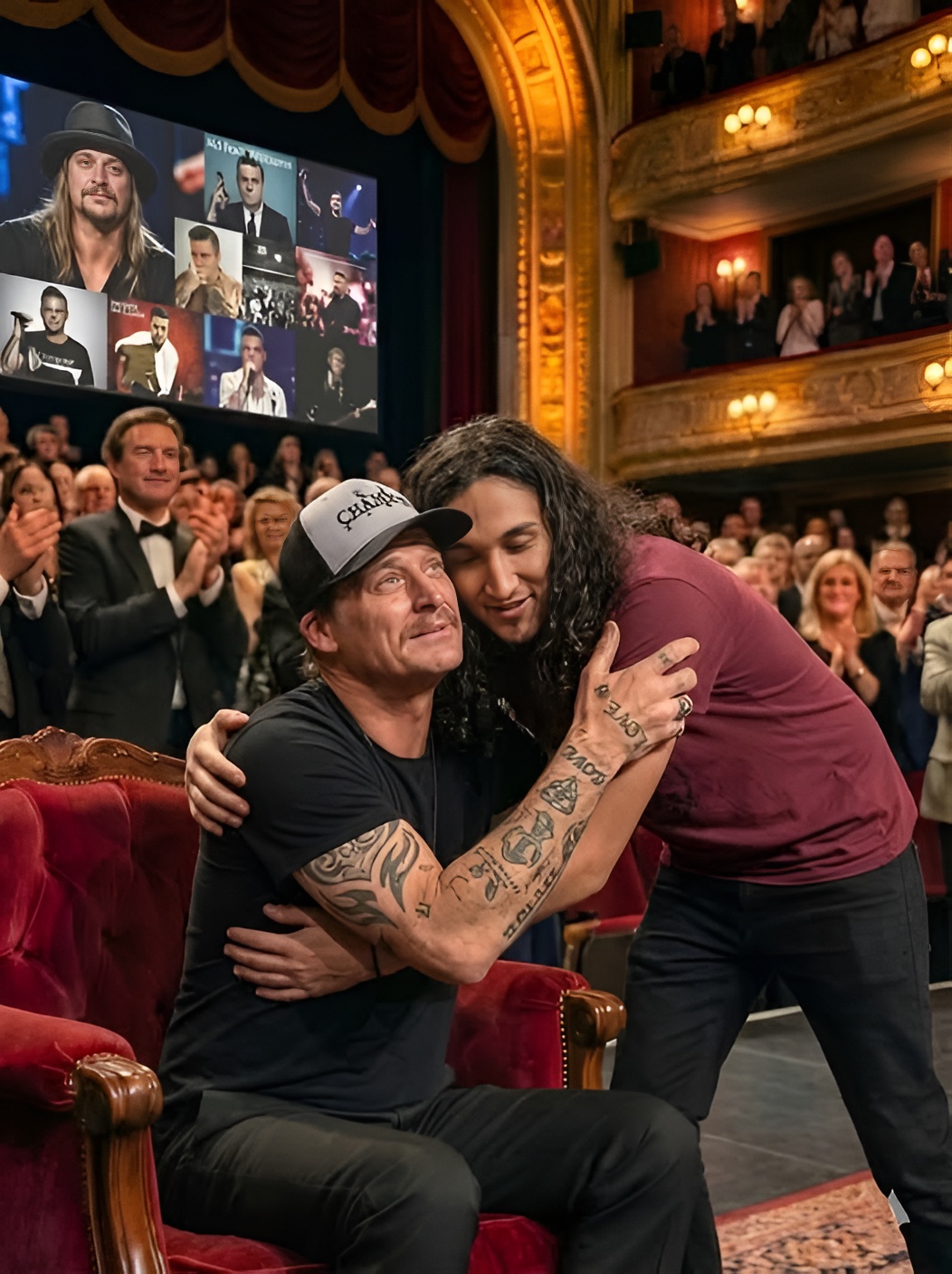 Witnesses say the reaction was immediate. Kid Rock lowered his head, visibly moved. There was no theatrical response, no grand gesture. Just quiet emotion. A man listening as his life — the struggles, the reinventions, the storms weathered in public view — was reflected back to him through his son’s voice.